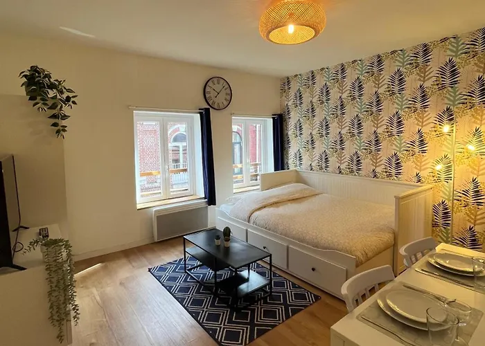 Apartmán Apartmán Le Fleuri nabízí kuchyni i pokoje s místností na posezení, televizí a TV s plochou obrazovkou se satelitními kanály. Toto ubytování o rozloze 25 m^2 ve městě Lille se nachází kousek od Le Pardon a 5 minut chůze od stanice metra Porte d'Arras.